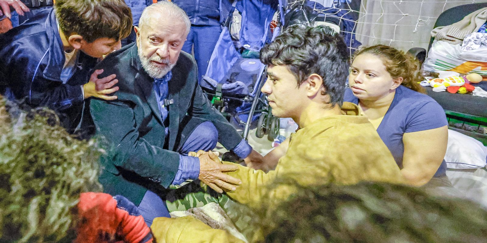 Lula seguiu para São Leopoldo e visitou um abrigo da cidade. Na sequência, se reuniu com o governador do Rio Grande do Sul, Eduardo Leite.