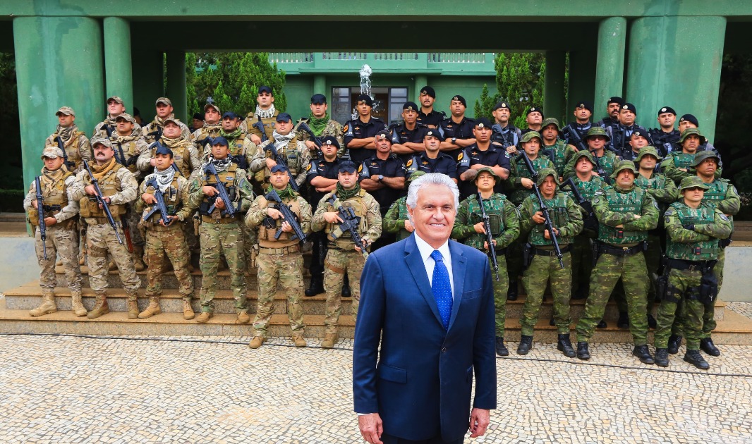 O governador Ronaldo Caiado recepcionou nesta quarta-feira (29/05), em frente ao Palácio das Esmeraldas, os 44 policiais goianos que se voluntariaram para reforçar a segurança e levar ajuda humanitária aos afetados pelas enchentes do Rio Grande do Sul (RS). A iniciativa, batizada de Operação “Brasil É Um Só”, teve início no último dia 17. “Goiás nunca se omitiu de enfrentar as dificuldades aqui no estado ou em qualquer lugar do país”, ressaltou Caiado. A coordenadora do Goiás Social, primeira-dama Gracinha Caiado, os secretários de Segurança Pública, coronel Renato Brum, e Comunicação, Gean Carvalho, e outras autoridades participaram do evento.