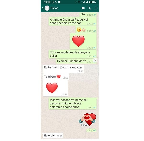 De modo geral, ela oscilava entre se sentir melhor e registrar dores e cansaço. Deu "Glória a Deus" quando a amiga disse que enviaria um remédio e soro fisiológico. Avisou depois que estava no hospital, "mas tem que esperar vaga, tá tudo ocupado".
