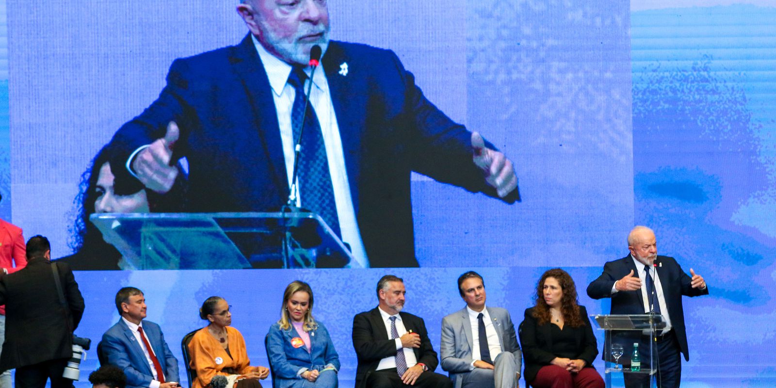 “[Na semana passada], eu tinha visto uma pequena nota no jornal de que tinha alguém reivindicando o Ministério da Saúde. Eu fiz questão de ligar [para ministra Nísia] porque eu ia viajar para fora do Brasil, eu disse ‘Nísia, vá dormir e acorde tranquila porque o Ministério da Saúde é do Lula, foi escolhido por mim e ficará até quando eu quiser”, disse.