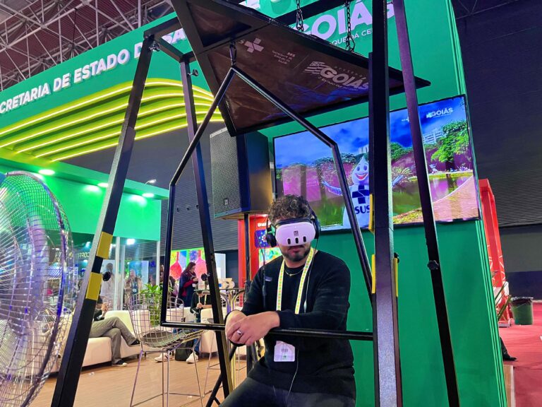 Durante o congresso, a SES-GO conta com um estande que enfatiza a regionalização da rede de atenção à saúde. Uma das atrações principais é a experiência imersiva intitulada Um Voo pela Saúde de Goiás, que utiliza realidade virtual para proporcionar aos participantes uma vivência sensorial completa.
