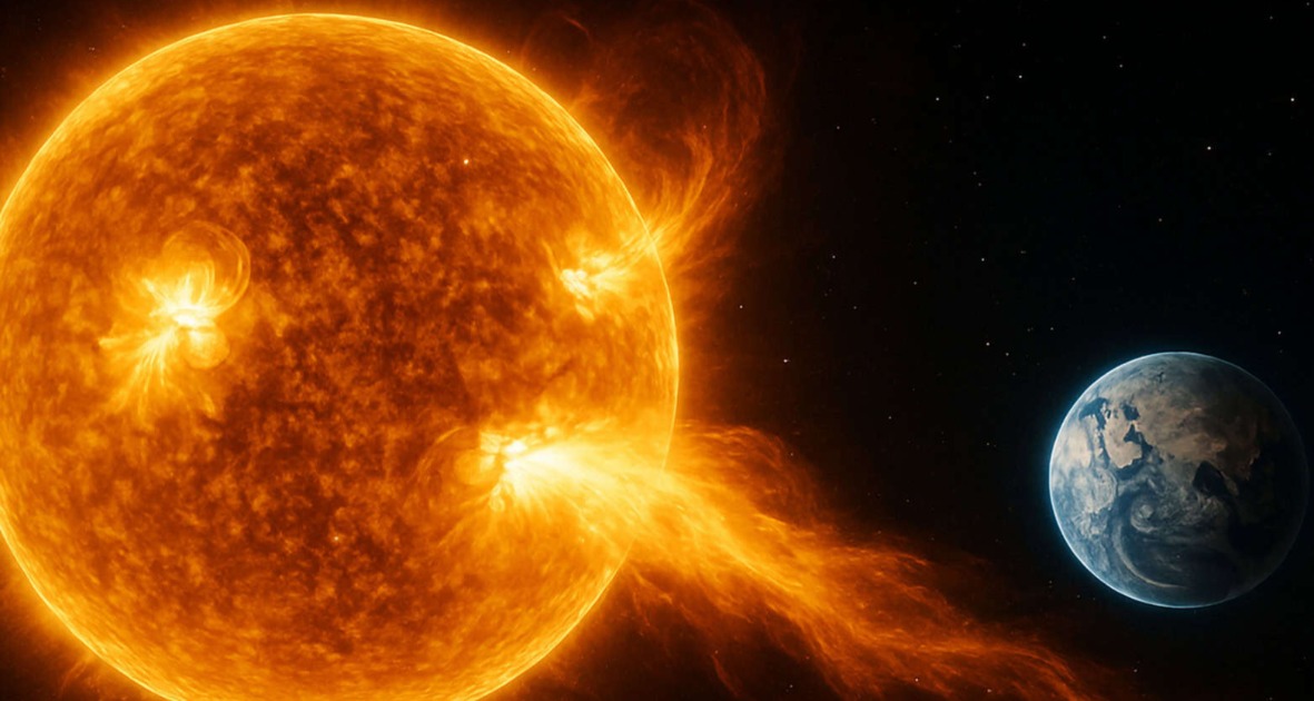 O Sol emitiu recentemente uma erupção solar de classe X1.2, uma das mais intensas registradas. Essa erupção, classificada como uma das mais poderosas, pode causar interrupções em comunicações de rádio de alta frequência, afetar sistemas de navegação GPS e representar riscos para satélites e redes elétricas.