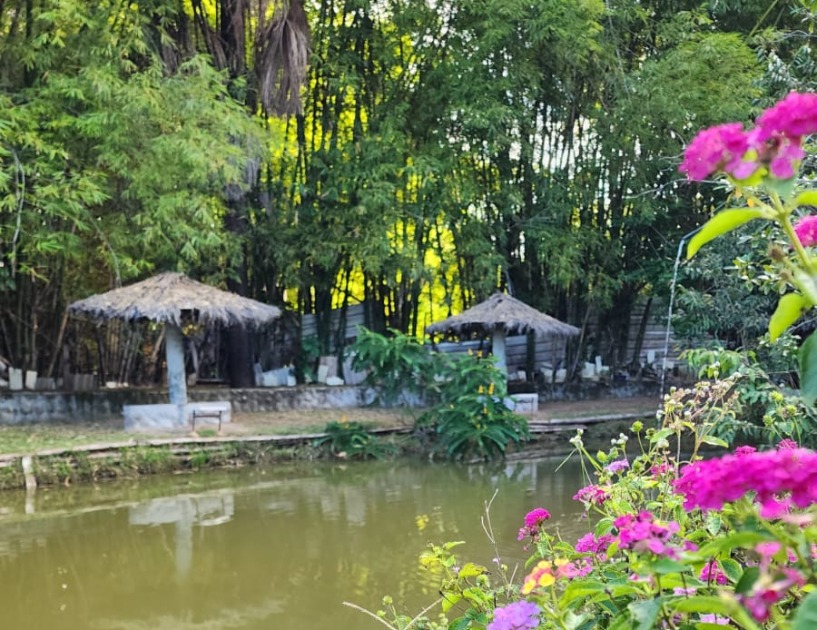 O local possui 2 piscinas adultas, uma de criança, lagos para pescar.