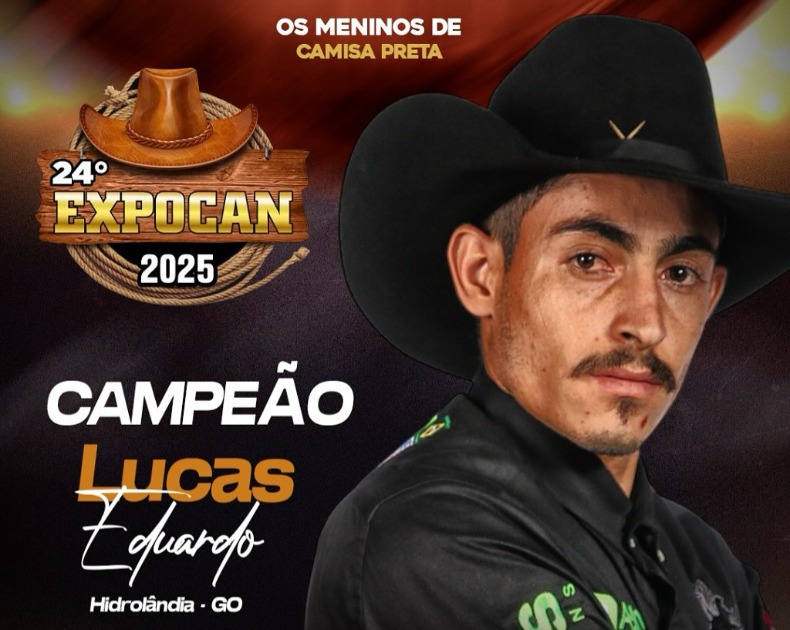 Lucas Eduardo Lima, natural de Hidrolândia (GO), brilhou na arena da 24ª EXPOCAN – Exposição Agropecuária de Canápolis, em Minas Gerais, e sagrou-se campeão na categoria montaria em touros. A competição faz parte do tradicional circuito da Ekip Rozeta, uma das mais respeitadas equipes de rodeio do Brasil.