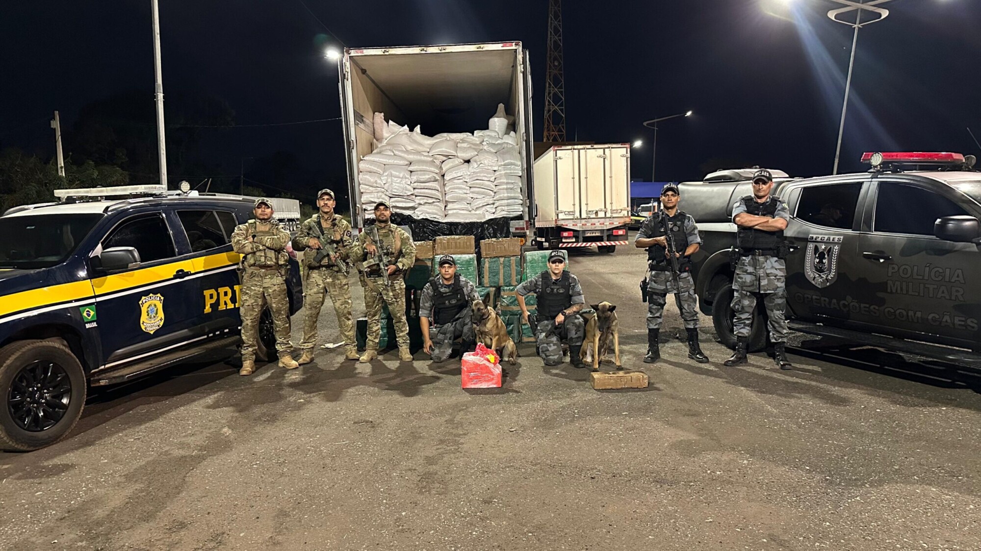 Uma operação integrada entre o Batalhão de Policiamento com Cães (BPCães) e a Polícia Rodoviária Federal (PRF) resultou na apreensão de 544 quilos de cocaína e na prisão de dois indivíduos, na região Sudoeste de Goiás, nesta quarta-feira (23/07).