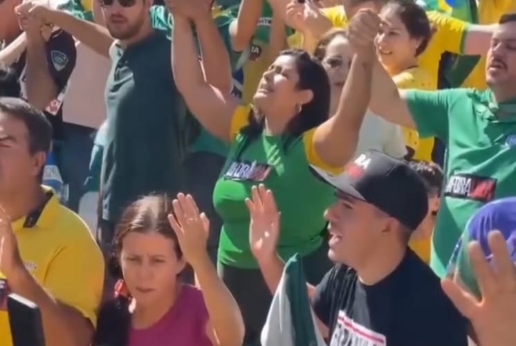 Manifestantes pró-Bolsonaro fazem oração em conjunto na manifestação que aconteceu na manhã de hoje (3/8), na Praça Tamandaré, em Goiânia, um ato de apoio ao ex-presidente Jair Bolsonaro.