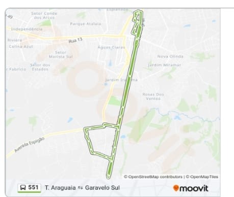 O itinerário da linha inclui passagem pela BR-153, facilitando o deslocamento para quem vive nessa região. Com a atualização, a 551 passou a operar também aos domingos, com 9 horários disponíveis, algo que não acontecia anteriormente.