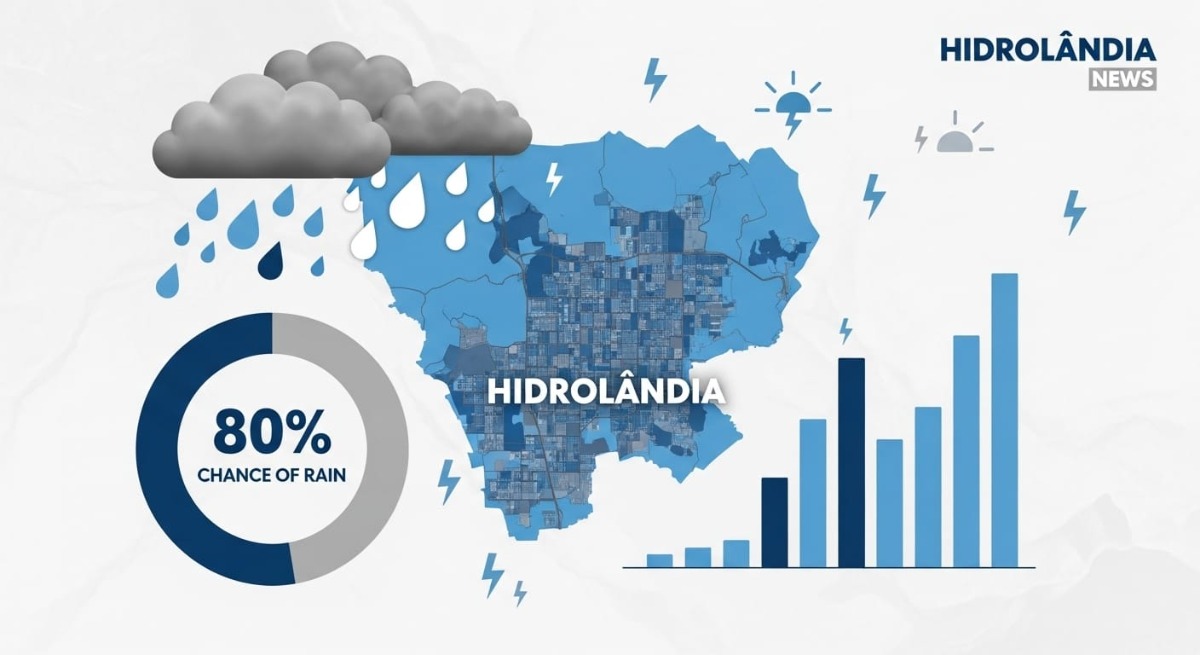 O tempo deve mudar em Hidrolândia. De acordo com o Centro de Informações Meteorológicas e Hidrológicas de Goiás (Cimehgo), há 80% de probabilidade de chuva para o município nesse fim de semana.
