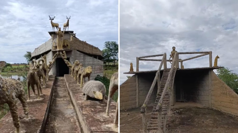 A arca impressiona pela quantidade de esculturas distribuídas pelo espaço. Leões, girafas, macacos, ovelhas e diversos pares de animais dividem o cenário com representações de Noé e sua família, além de mesas dispostas como em um museu. Nas redes sociais, as reações são de surpresa e elogios, com internautas destacando a grandiosidade e a singularidade da obra.