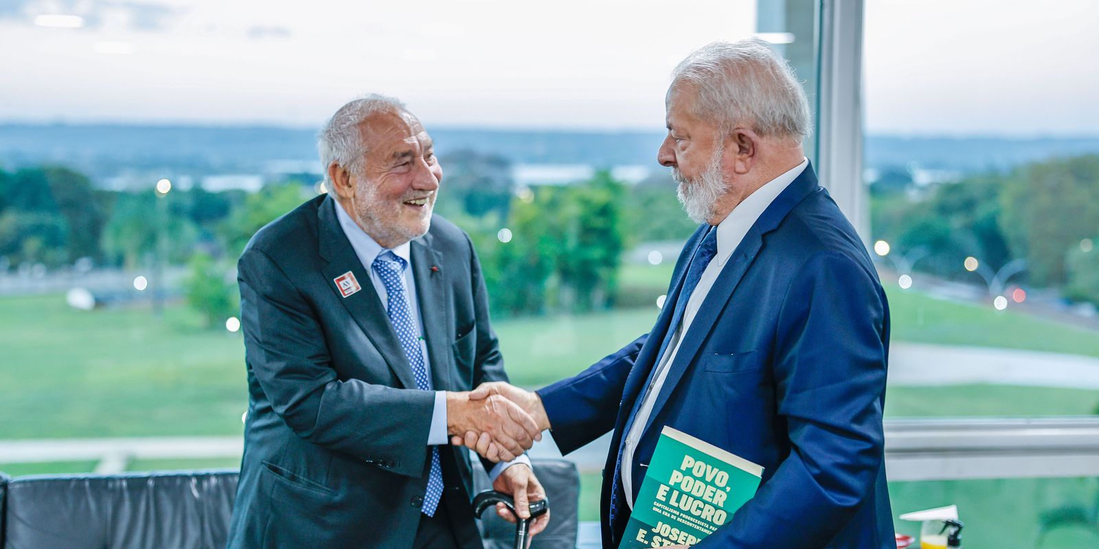 O presidente Luiz Inácio Lula da Silva recebeu, na tarde desta quarta-feira (13), no Palácio do Planalto, em Brasília, economista Joseph Stiglitz, professor da Universidade de Columbia, nos Estados Unidos, e ganhador do Prêmio Nobel de Economia. Segundo a assessoria de Lula, o presidente agradeceu as menções positivas de Stiglitz sobre a reforma fiscal, os resultados recentes da economia e o aumento na geração de empregos, além da reativação de programas sociais e investimentos em obras de infraestrutura, retomados pelo atual governo.