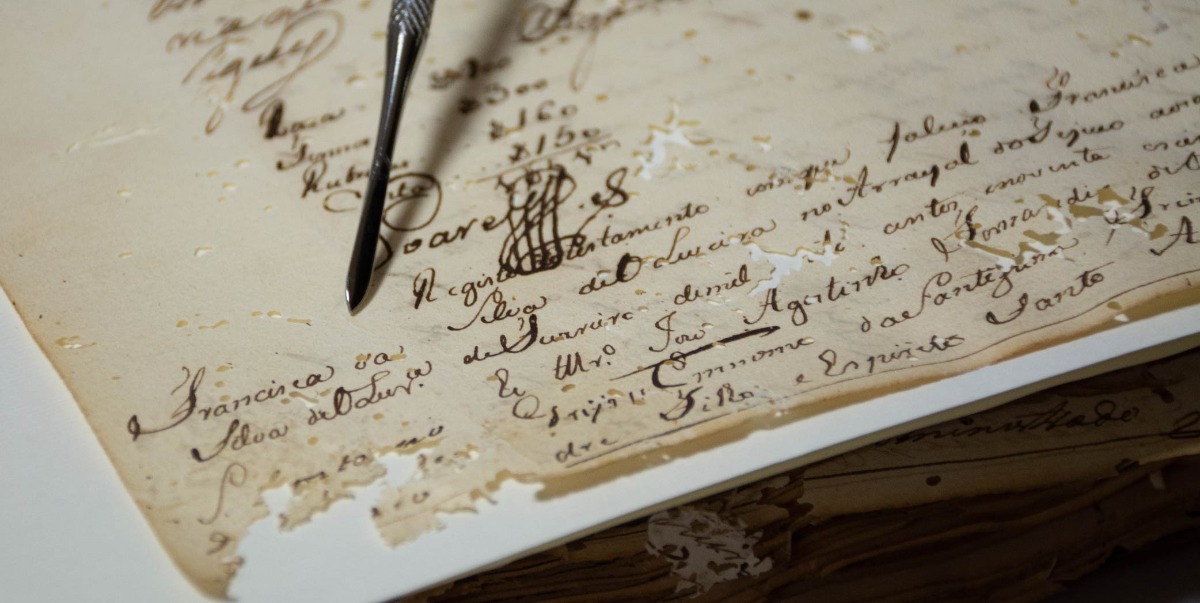 O documento foi registrado em papel feito em tramas de linho e algodão (Crédito: Gláucia Rodrigues)