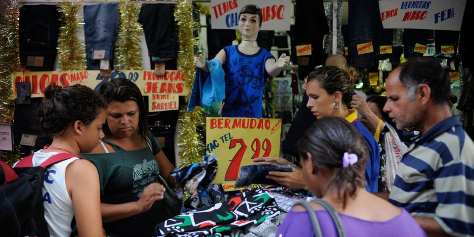 Apresentaram queda em julho as atividades tecidos, vestuário e calçados (-2,7%); livros, jornais, revistas e papelaria (-2,6%); móveis e eletrodomésticos (-0,9%) e combustíveis e lubrificantes (-0,1%).