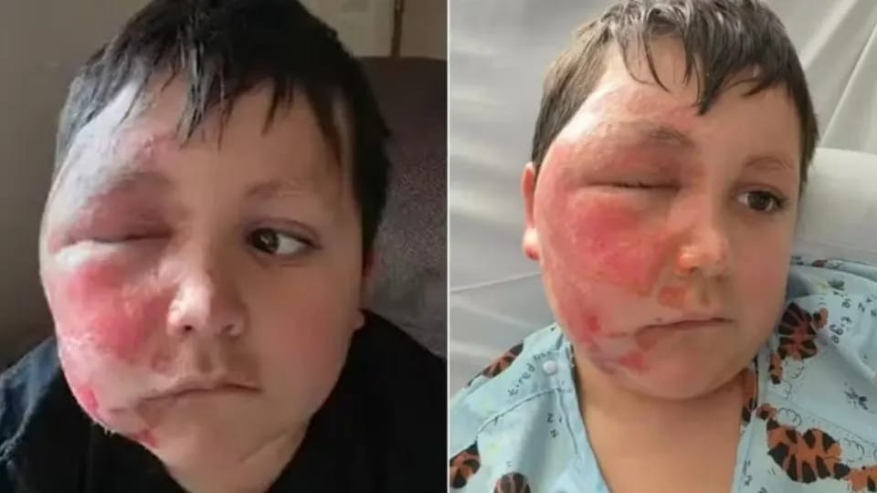 Um menino de 9 anos sofreu queimaduras no rosto após tentar seguir uma tendência online sugerida por um amigo.
