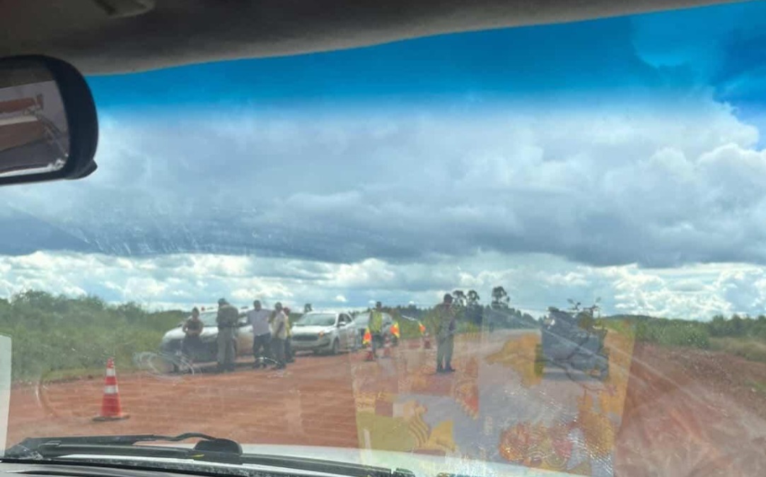 Imagens que circulam nas redes sociais mostram movimentação no local e pessoas paradas às margens da estrada de terra, logo após o trecho asfaltado.