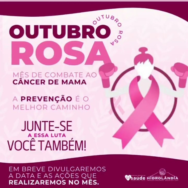 A secretaria de saúde de Hidrolândia GO, comunica em suas redes sociais que em breve vai divulgar as datas de ações que serão realizadas para a prevenção do câncer de mama.