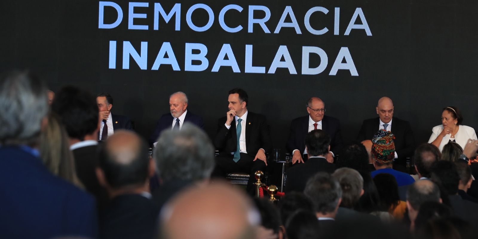 Moraes participou do ato em defesa da democracia, no Congresso Nacional. Além do ministro, o evento também contou com a presença do presidente Luiz Inácio Lula da Silva e do presidente do Senado, Rodrigo Pacheco (PSD-MG), entre outras autoridades.