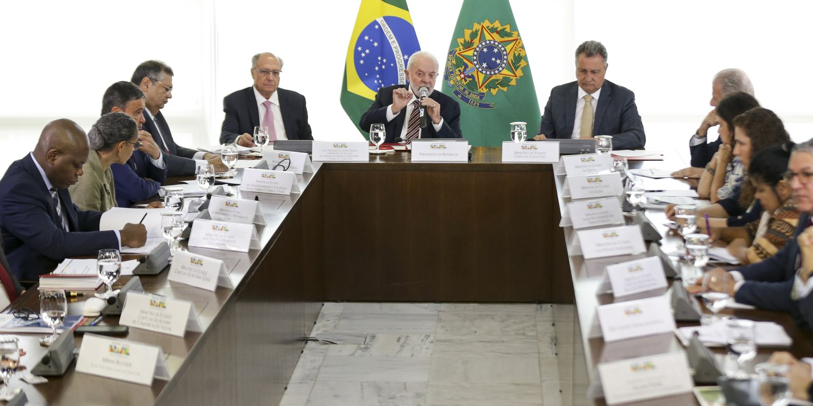 Participaram da reunião o vice-presidente Geraldo Alckmin, os ministros da Casa Civil, Rui Costa; da Justiça e Segurança Pública, Flávio Dino; da Defesa, José Mucio; do Desenvolvimento e Assistência Social, Wellignton Dias; da Saúde, Nísia Trindade; da Gestão e da Inovação em Serviços Públicos, Esther Dweck; do Meio Ambiente e Mudança do Clima, Marina Silva; dos Direitos Humanos e Cidadania, Silvio de Almeida; dos Povos Indígenas, Sônia Guajajara; da Secretaria-Geral, Márcio Macedo; da Secretaria de Relações Institucionais, Alexandre Padilha; da Secretaria de Comunicação Social, Paulo Pimenta; e da Advocacia-Geral da União, Jorge Messias.