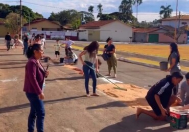 A paroquia de Hidrolândia reúne fieis, moradores e voluntários e vestem as ruas da cidade com tapete de Corpus Christi