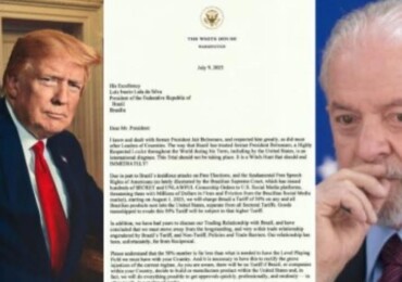 ‘Vergonha internacional’: em carta enviada para Lula, Trump, cita Bolsonaro e anuncia taxa de 50%