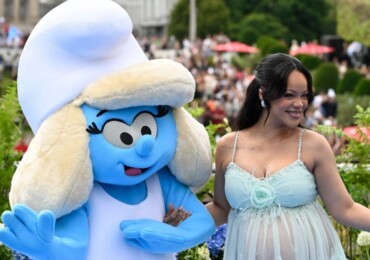 Rihanna exibe barriga de grávida e encontra sua smurfete em première de “Smurfs” na Bélgica
