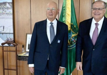 O presidente em exercício recebeu Klaus Schwab no Palácio do Planalto. "Destaquei a necessidade de reforçarmos os laços econômicos e comerciais entre os países", postou Alckmin nas redes sociais.