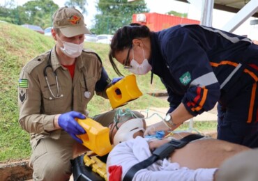 No simulado, foram realizados procedimentos de controle de pânico, evacuação de áreas, resgate e atendimento às vítimas, nove hipotéticas
